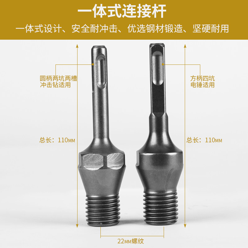 Electric hammer drill square shank turning water drill impact electric drill round shank conversion head hexagonal shank connecting head driller accessory