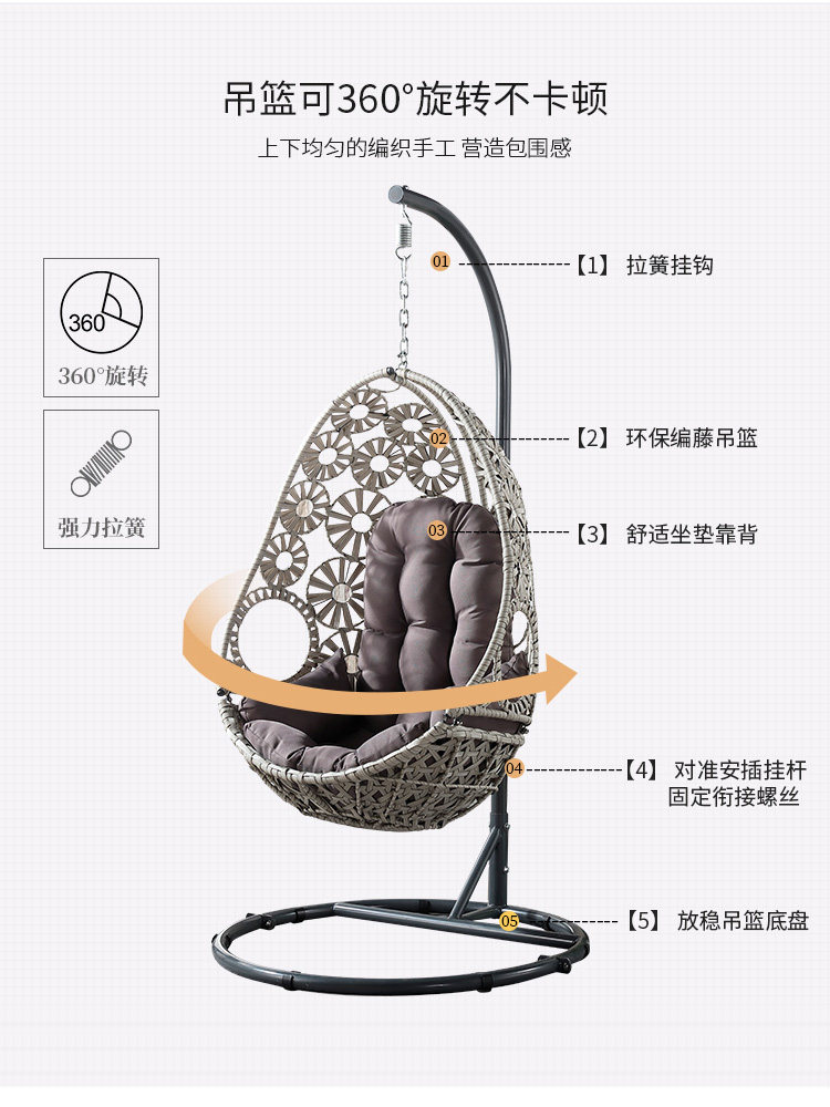 Hanging basket rattan outdoor courtyard balcony living room indoor home leisure bird's nest net red outdoor cradle hanging chair