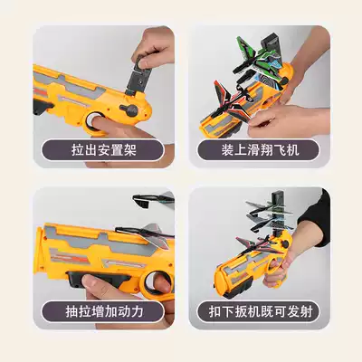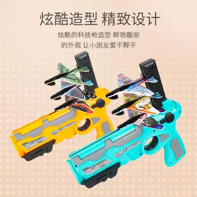 Foam plane firing gun Children's outdoor ejection type magic dazzling air combat flying saucer launcher Glider toy