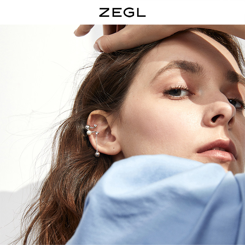 ZEGL designer advanced sense artificial pearl ear clip female temperament cold wind ear bone clip earrings without ear hole earrings