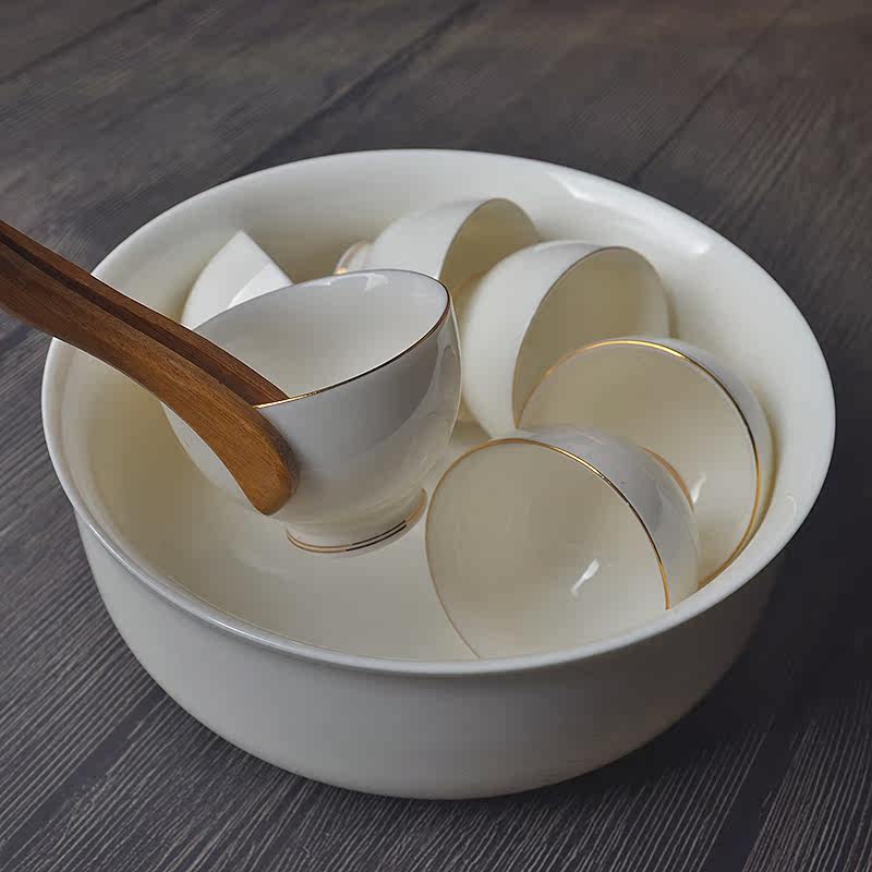 Defied white porcelain tea tea tea-washing govt tea home cup wash goat fat jade large fish tank whole set of large soup bowl