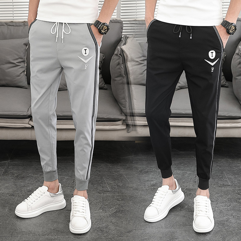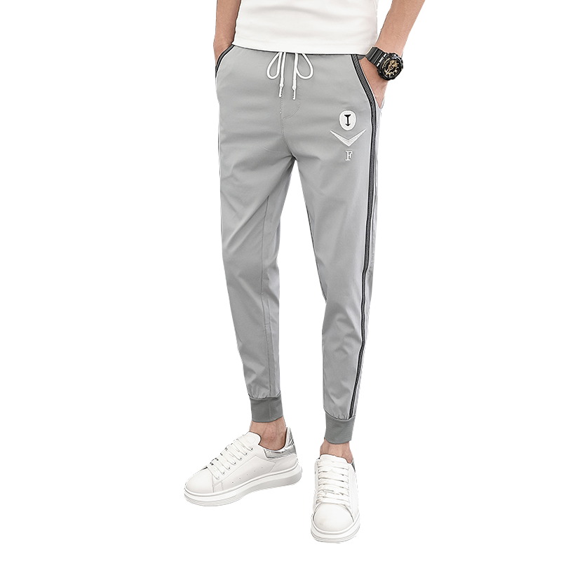 Summer thin Grey Casual Pants Men 90% Body Smoke Pipe Pants Embroidery Splicing Men's Bungled Pants Trend 100 lap