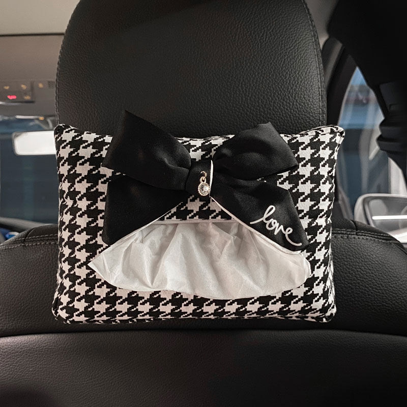 Black and white grid tissue box Black and white grid black bow tissue box Black and white grid camellia tissue box