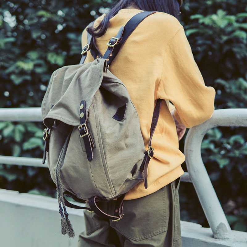 DUOBAI retro World War II M39 paratrooper wrap canvas cow leather large capacity double shoulder bag locomotive camping full helmet bag