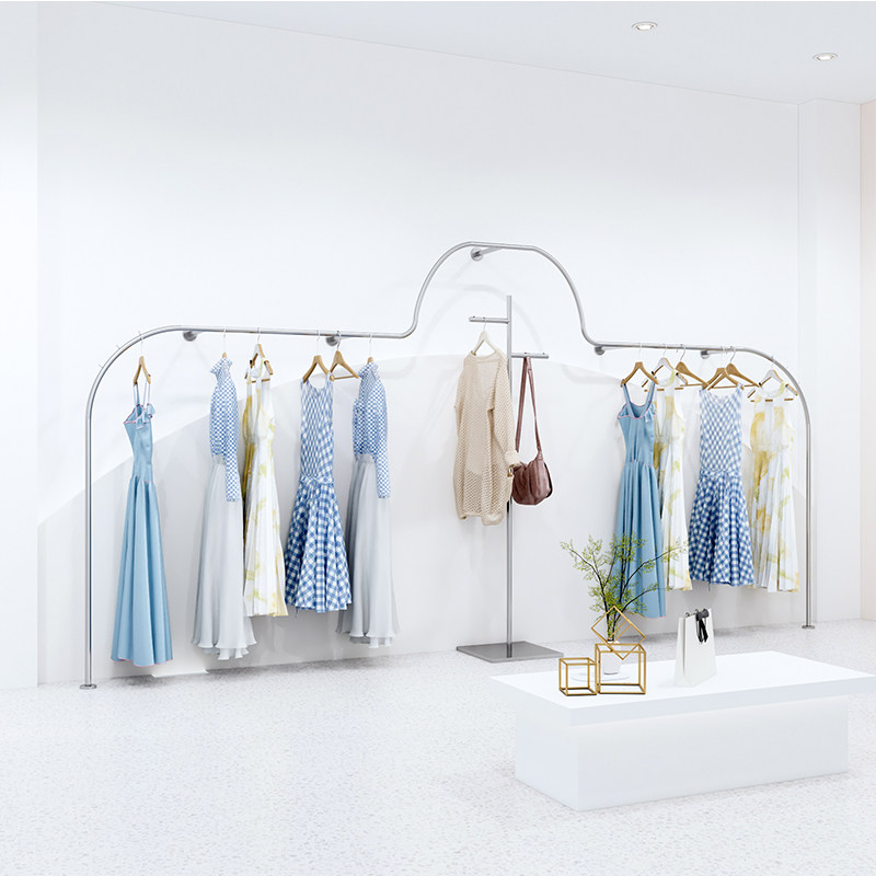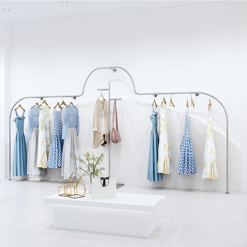 Clothing clothes shop hangers Creative modeling stainless steel fashion display rack Women's clothing shelves wall display rack