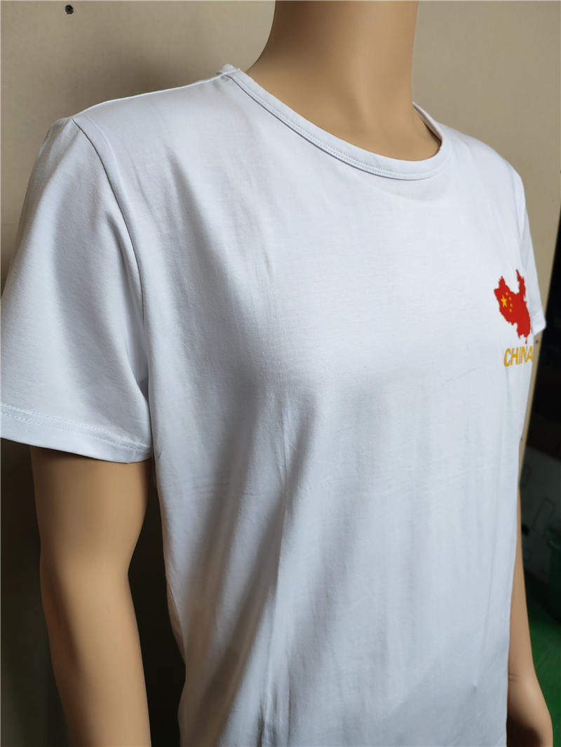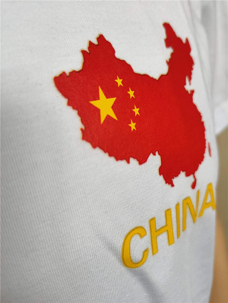 White cotton T-shirt Short Sleeve China Map Rooster Half Sleeve Men's casual White Patriotic round neck summer Undershirt