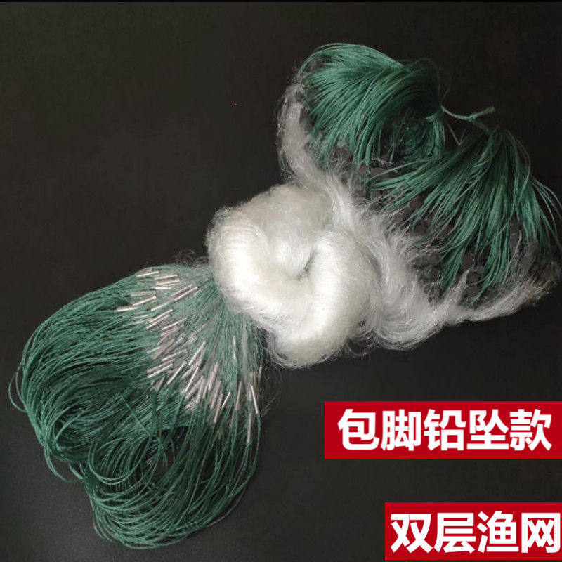 Double-layer sinking net, hand-weighted fishing net, hanging net, fishing net, one finger fishing net, sticky net, wire mesh, small crucian carp, small white strip