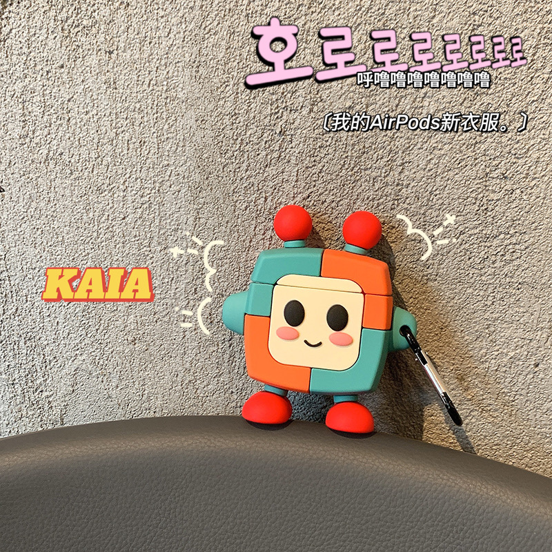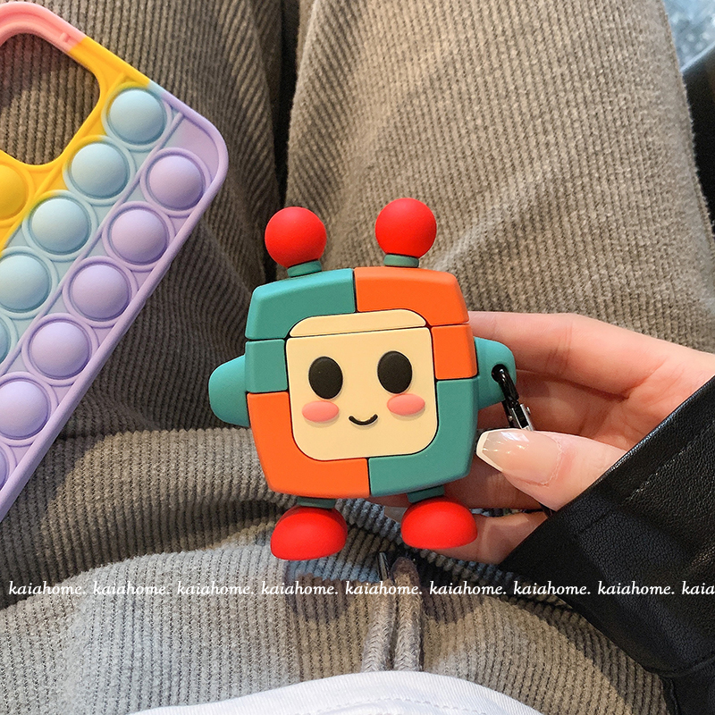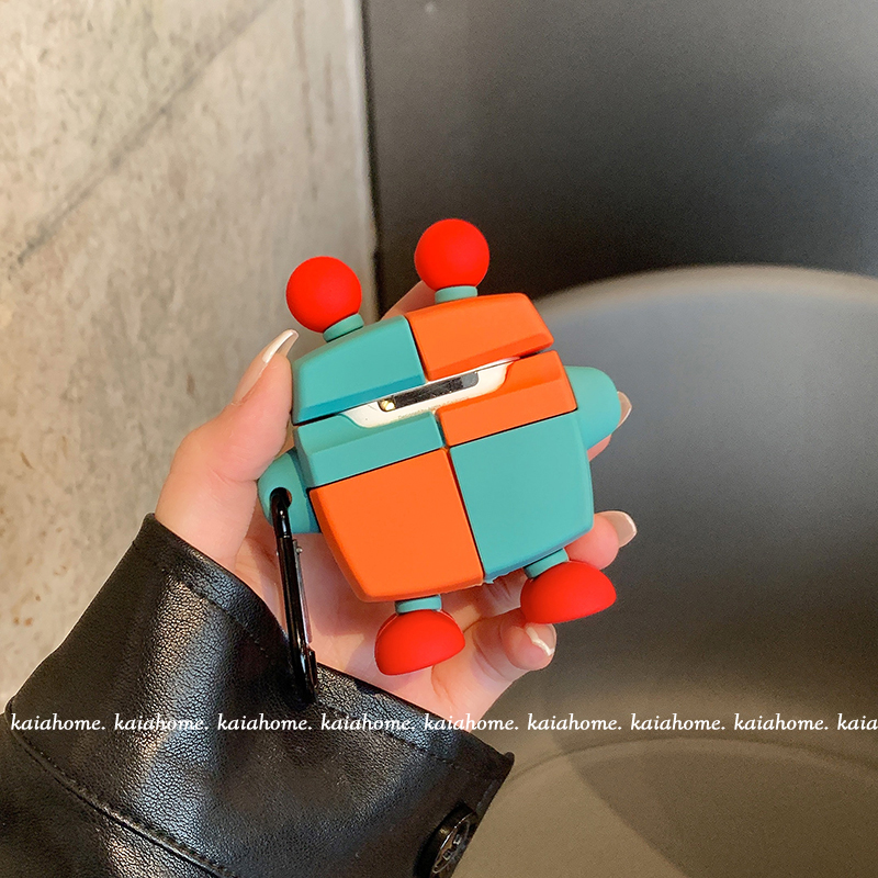kaia fun cute robot airpods protective sleeves 2 generations Apple wireless Bluetooth universal 1 3 generation silicone pro headphone sleeve airpods pro box anti-scraping full