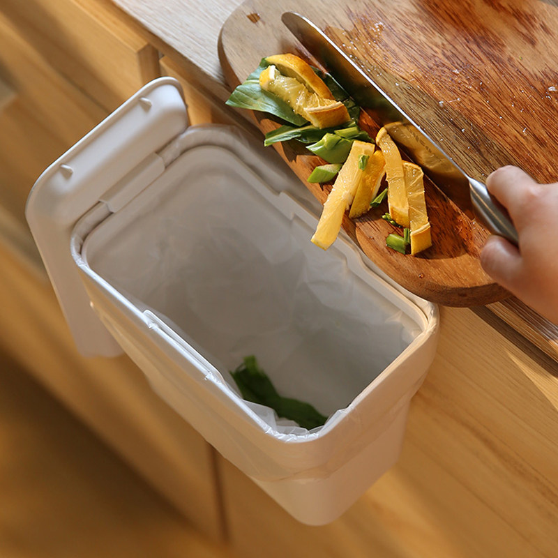 Round wall-mounted trash can kitchen sink sundries home cabinet hanging desktop storage bucket with cover trumpet