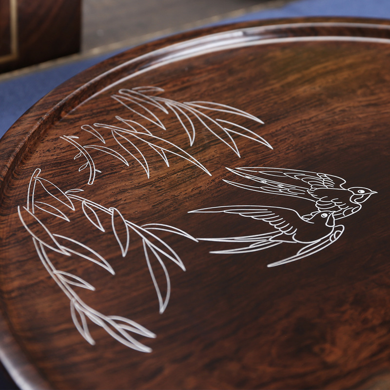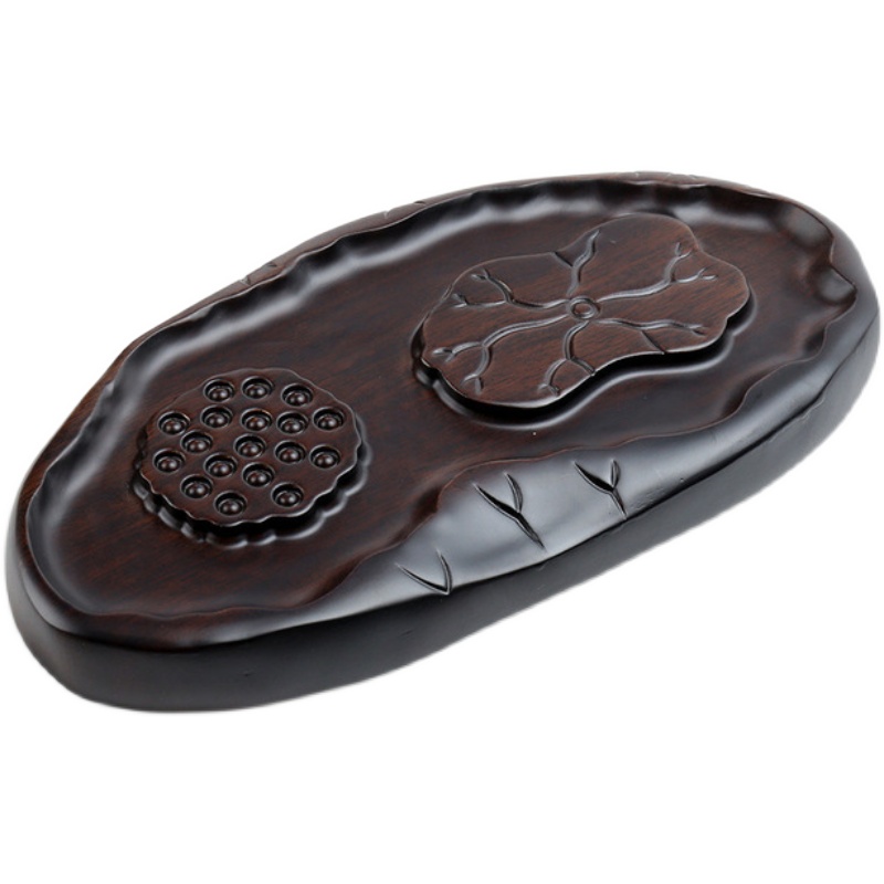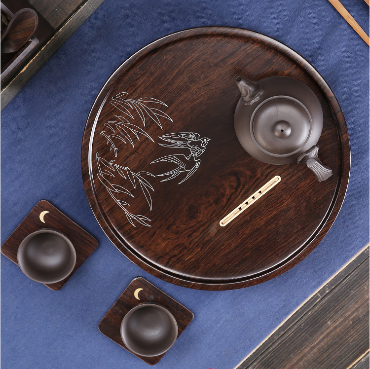 Simple black sandalwood log solid wood whole rectangular circular tea plate household minimal tea plate