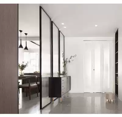 Screen custom simple wrought iron living room Changhong glass entrance porch Light luxury stainless steel partition wall occlusion decoration