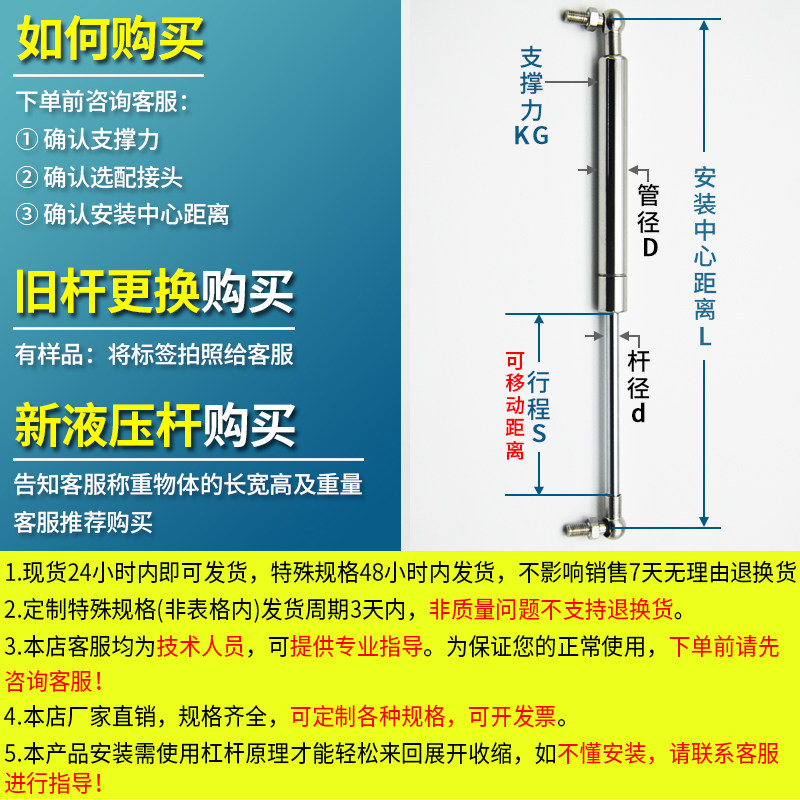 Stainless steel gas spring heavy nitrogen hydraulic rod support rod telescopic pneumatic bar on the flip door pneumatic lifting top bar