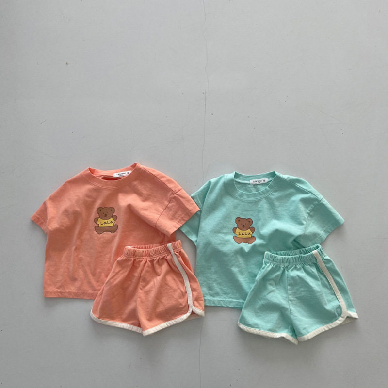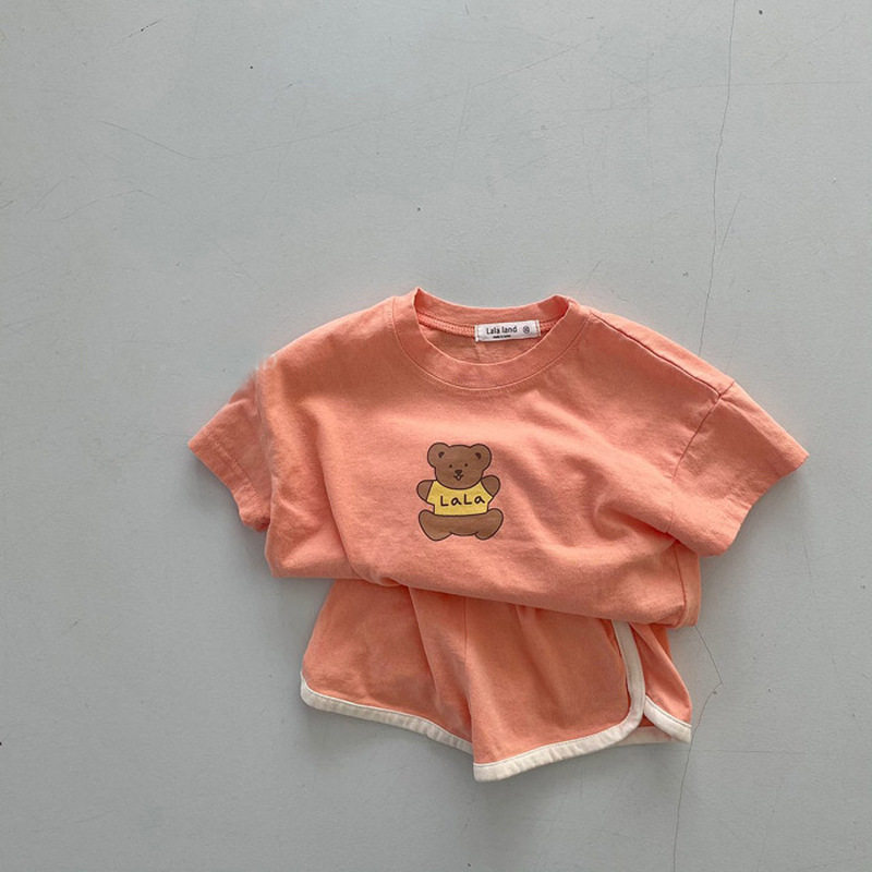 Summer Short Sleeve Men's and Women's Baby Western Style Suit Little Kids Baby Clothes Cute Cartoon T-shirt Shorts Two Piece Set