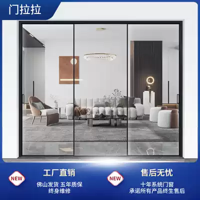 Very narrow frame Changhong glass aluminum alloy kitchen door Tempered glass sliding door Living room balcony triple linkage hanging wheel