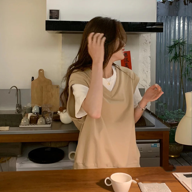 Sports suit women's casual sleeveless sweater women's thin fashion Korean style chic top small summer two-piece