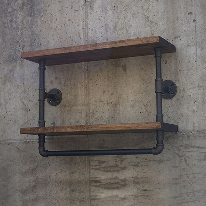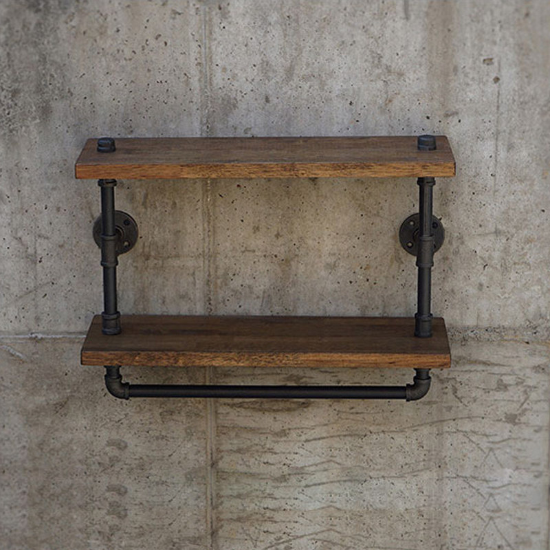 Industrial Wind American Retro Water Pipe Rack Wall Living Room Wall-mounted Wine Rack Solid Wood Plate Shelf Iron Art Bookshelves