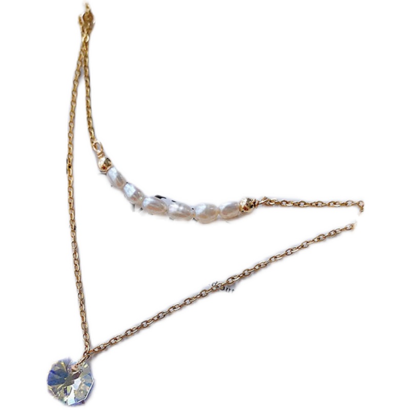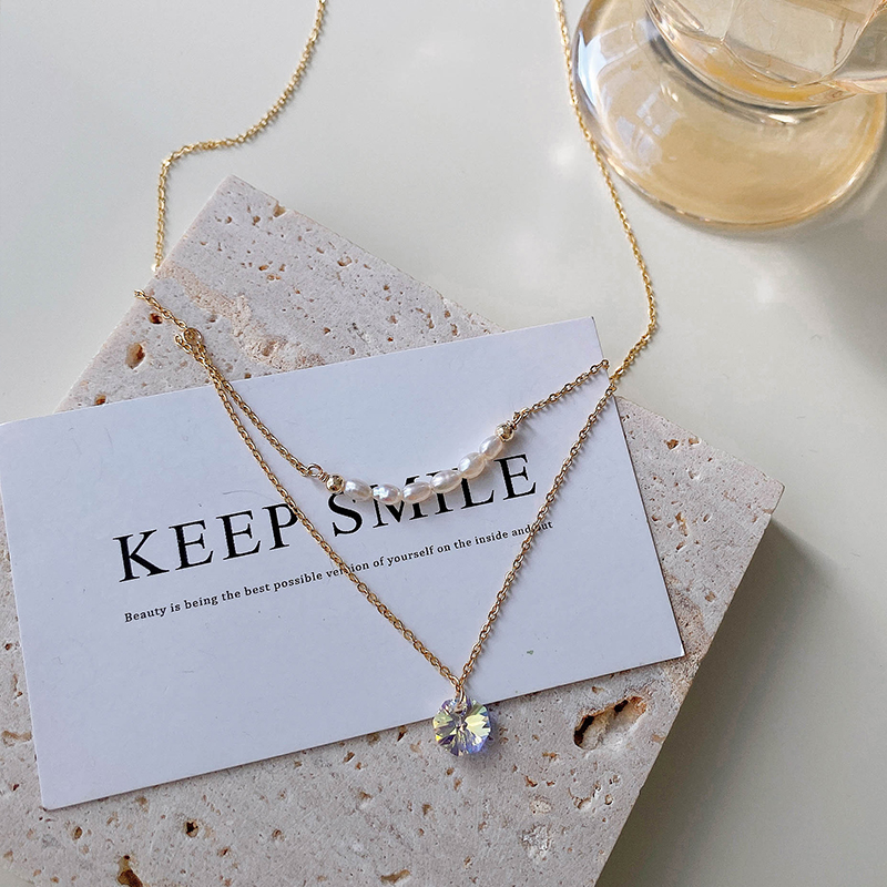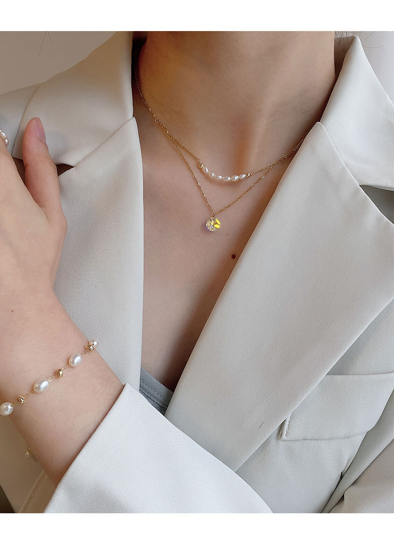 Natural Pearl Double Layer Pearl Necklace temperament Korean small crowdsourced Frosty Wind Lock Bone Chain