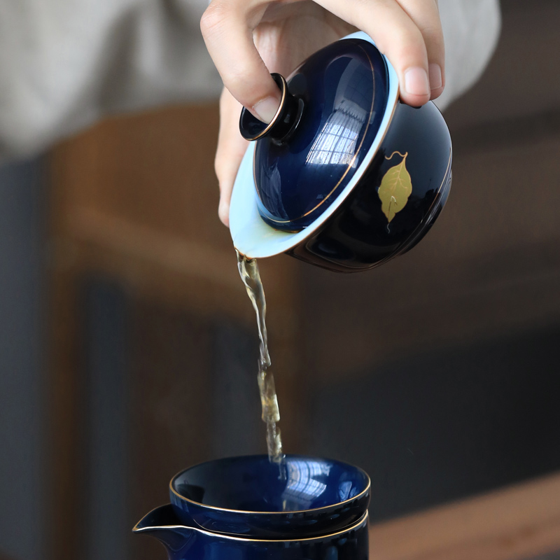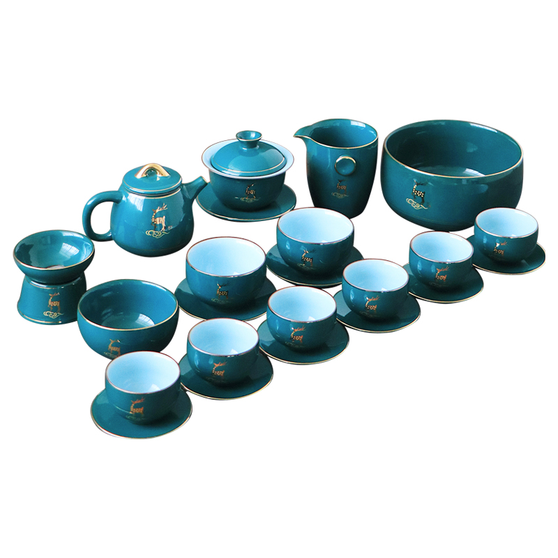 Daye Green Gold Sets All The Way to accompany the blue and white gold sets all the way together with the blue and white gold set group One Ye Qiaqiu Dai green-gold cover group One Ye Qiaqiu