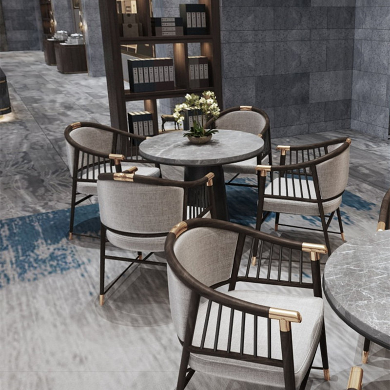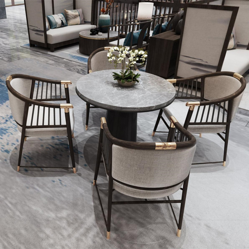 New Chinese style Zen dining room dining chair hotel lobby club reception chair modern minimalist solid wood negotiation table and chair combination