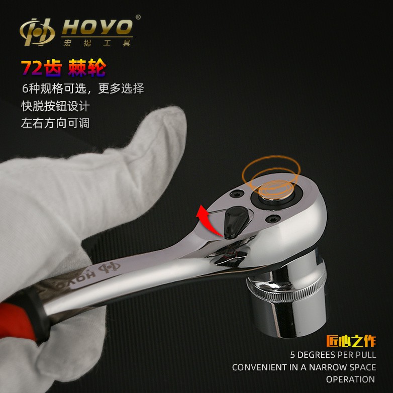 HOYO large, medium and small flying two-way universal pull speed ratchet three-head small fast labor-saving fast wrench sleeve tool two-way