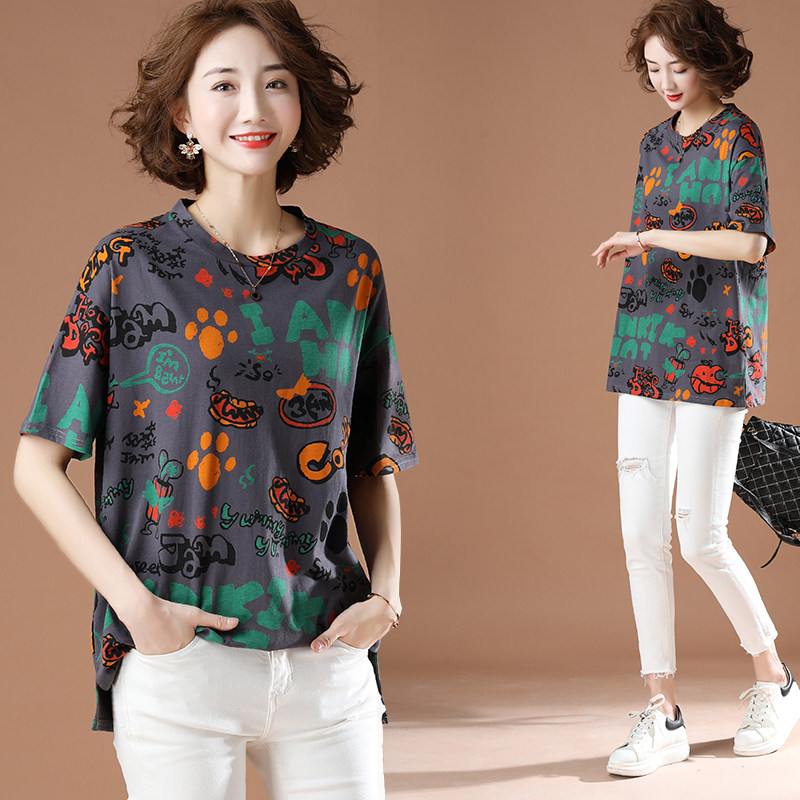 September Strangling Europe Station New Big Code Graffiti Printed Short Sleeve T-shirt Woman 2023 Summer Loaded European Goods Loose Blouse-Taobao