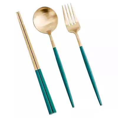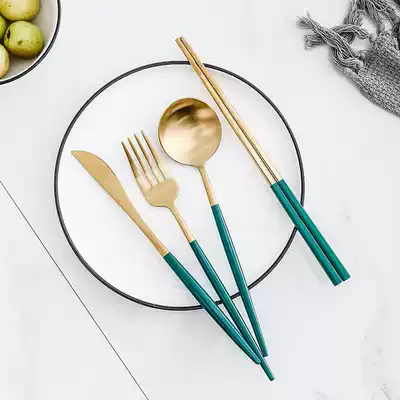 Nordic light luxury 304 stainless steel tableware full set home Emerald chopsticks Western steak knife and fork spoon series