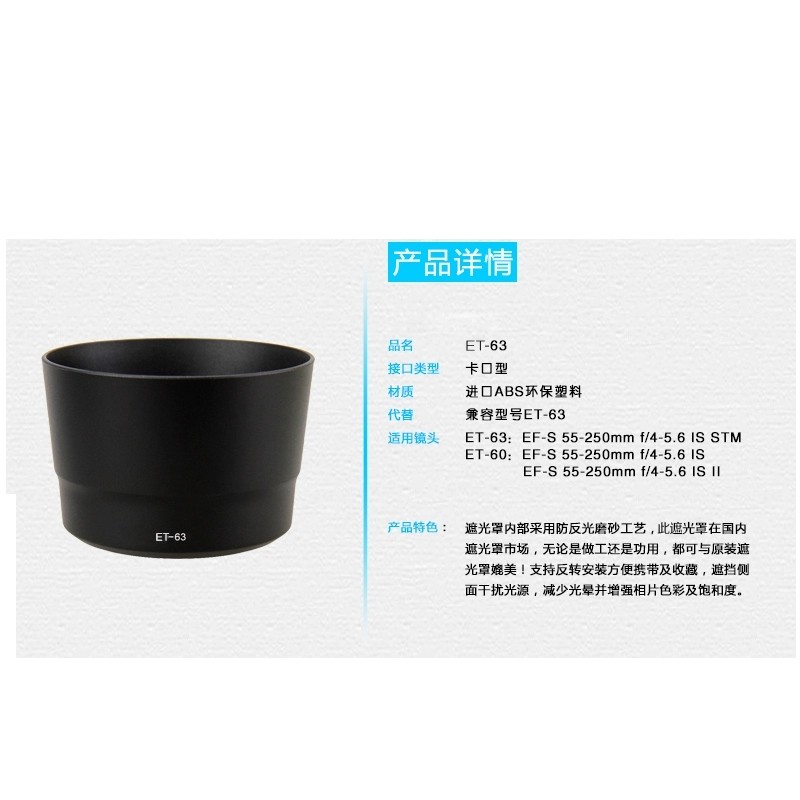 Applicable Canon ET-63 shade cover 55-250mm STM lens Lens Shade Removable bayonet can be anti-buttoned