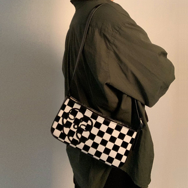 Black and white chessboard plaid axillary underpack