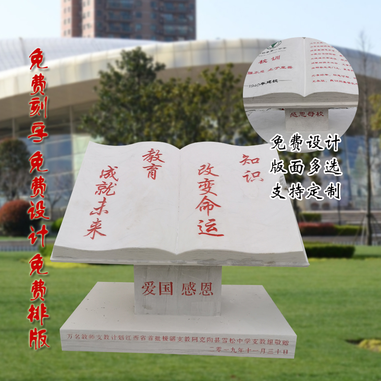 Stone carving book Chinese white jade scroll book-shaped custom natural marble book rule of law campus culture lettering ornament