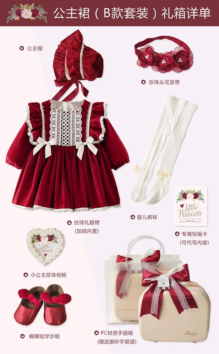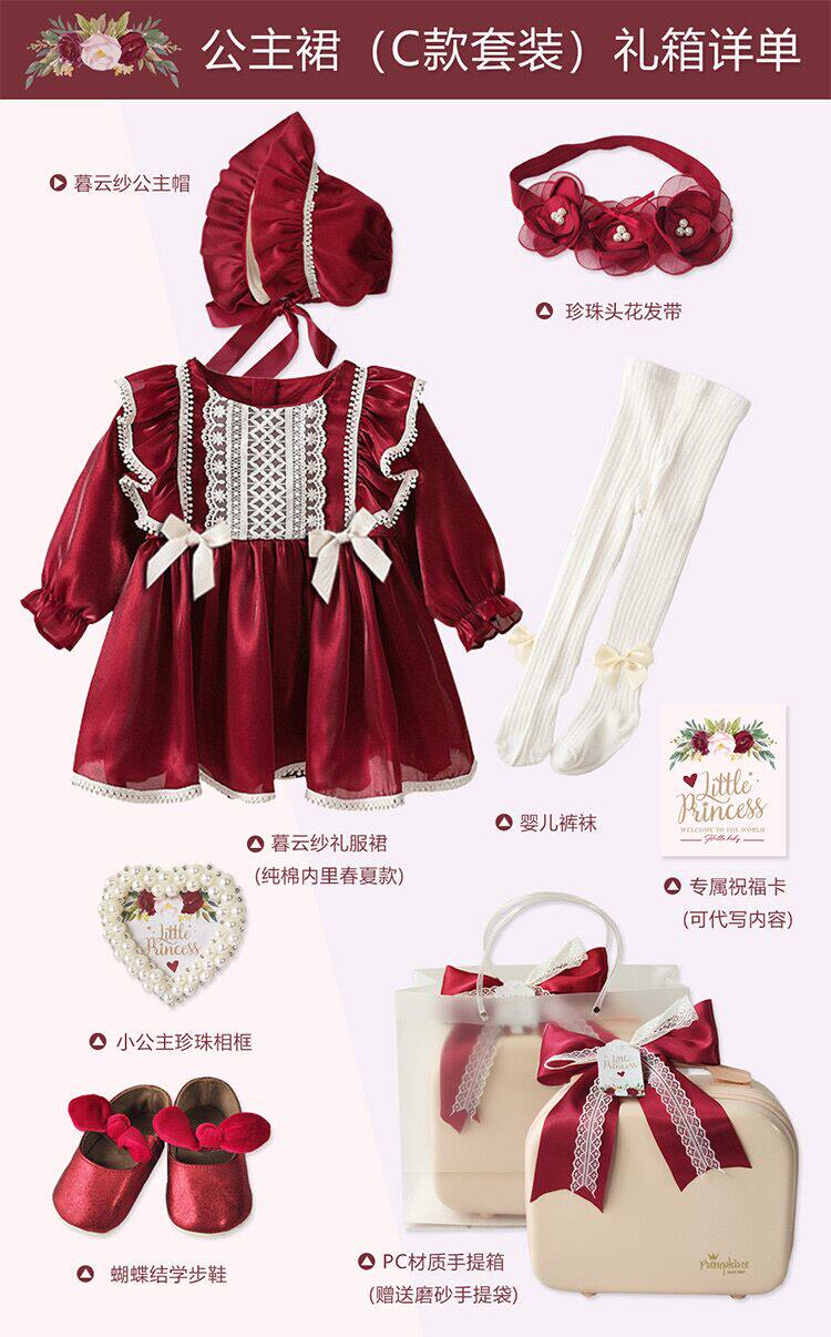 Baby red dress dress Children's baby princess gift box Bathyage birthday dinner with gift summer