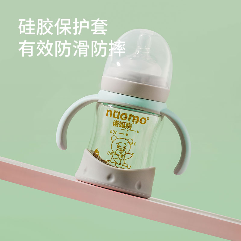 Nuo mother glass milk bottle newborn baby anti-fall large-capacity baby over 1 year old drinking milk straw cup 300ML