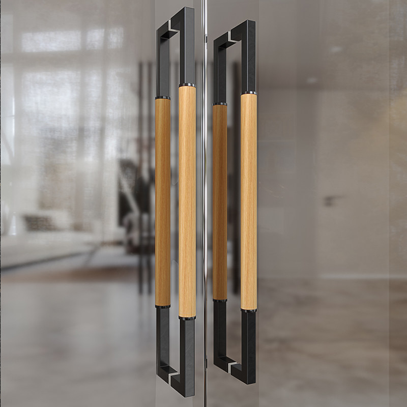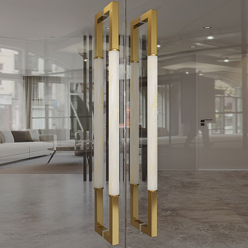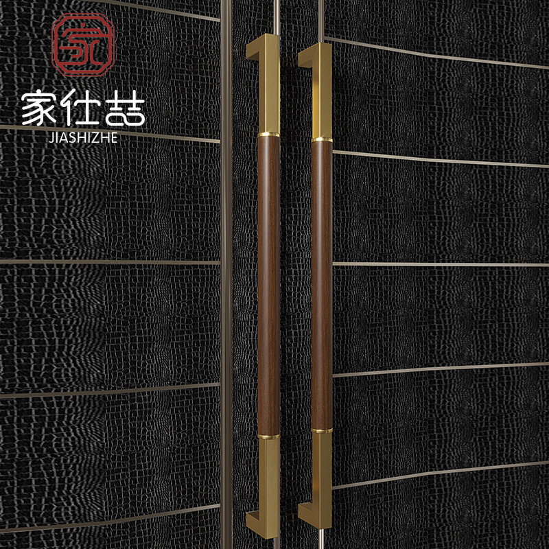 Chinese glass door handle gold Nordic light lavish imitation jade with frame push-pull solid wood door handle black walnuts handle