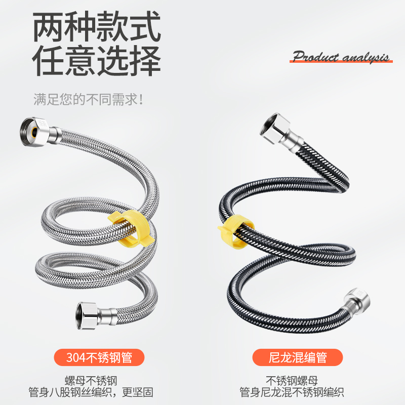 304 stainless steel metal braided hot and cold water inlet hose 4 points household water pipe toilet water heater high pressure connection pipe