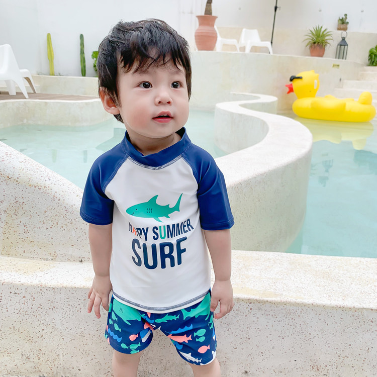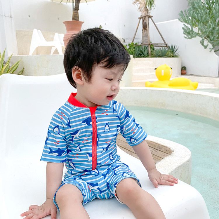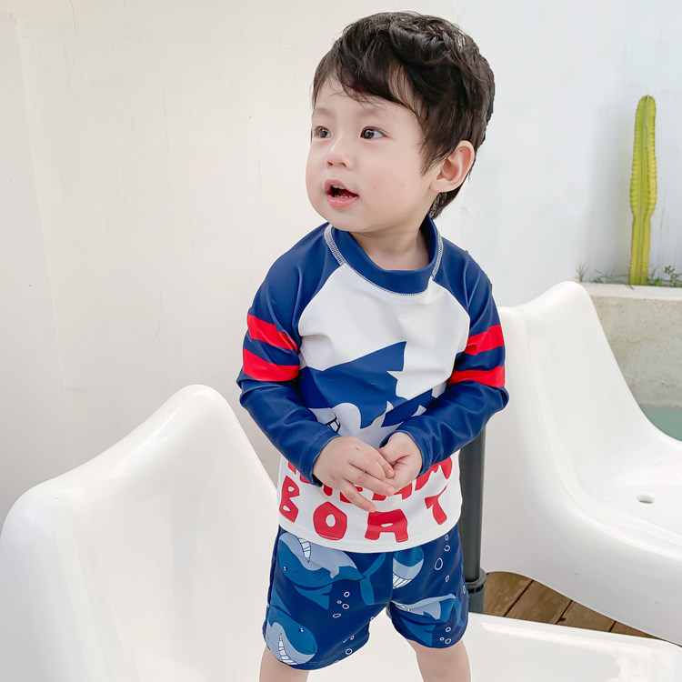 Children's swimsuits for boys sunscreen professional long sleeve children's 2020 new Korean cute split one-piece swimsuits