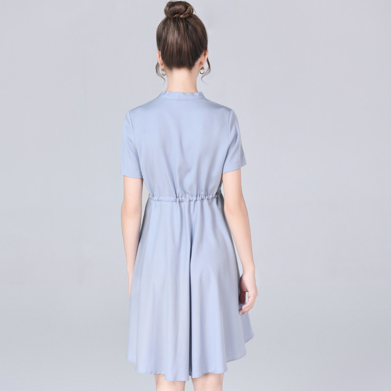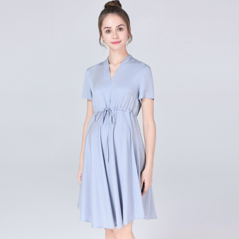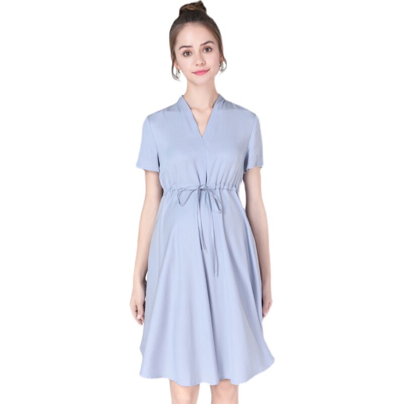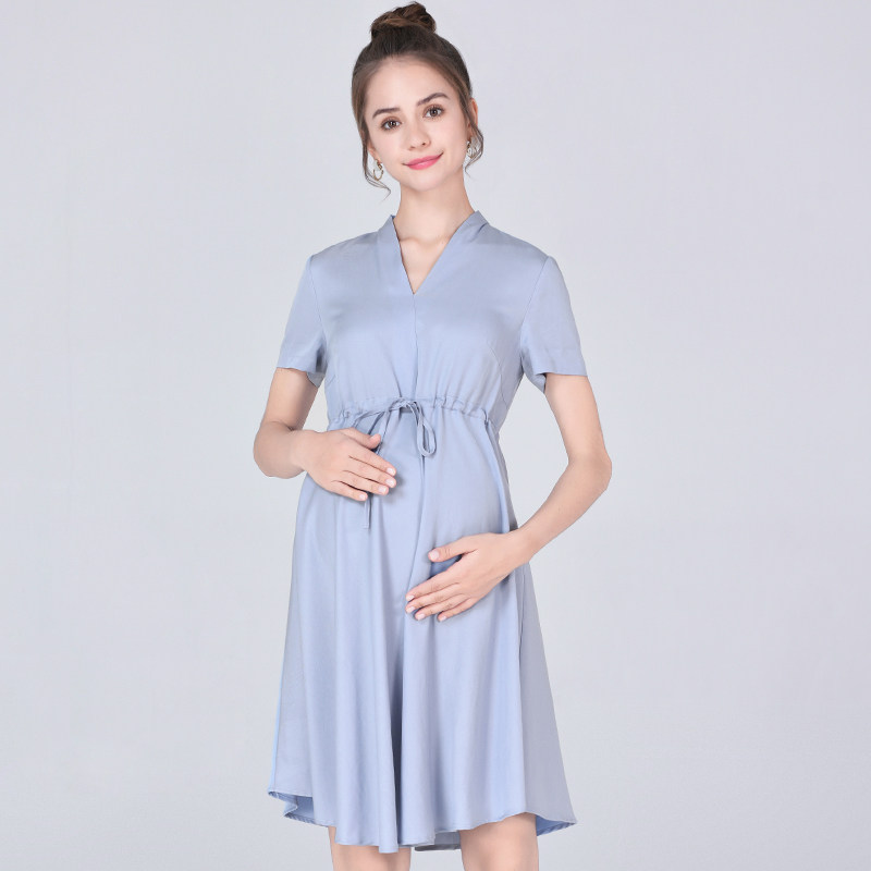 Pregnancy Woman Dress Summer Long Edition Fashion Pregnant Woman Foreign Dress Woman Blue Short Sleeve Business Career Loose Blouse Dresses