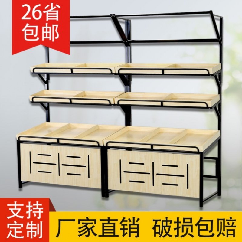 Fruit Shelf Display Shelf Supermarket Multi-Layer Steel Wood Vegetable Shelf Display Shelf Fruit Store Fruit Shelf Slanted