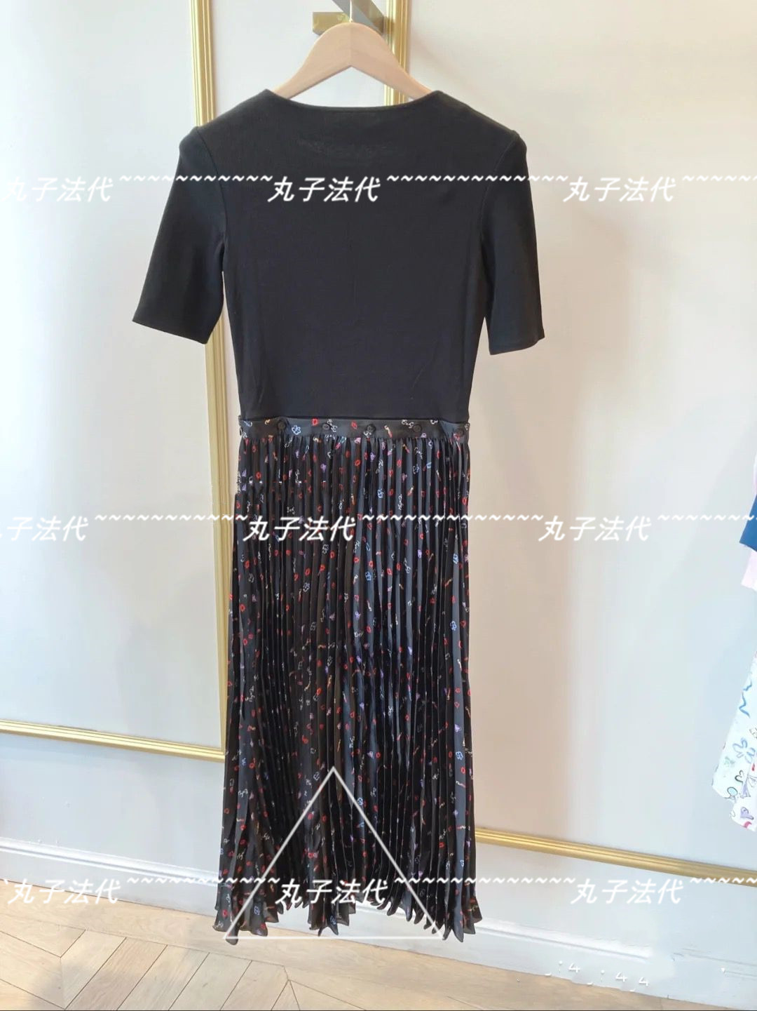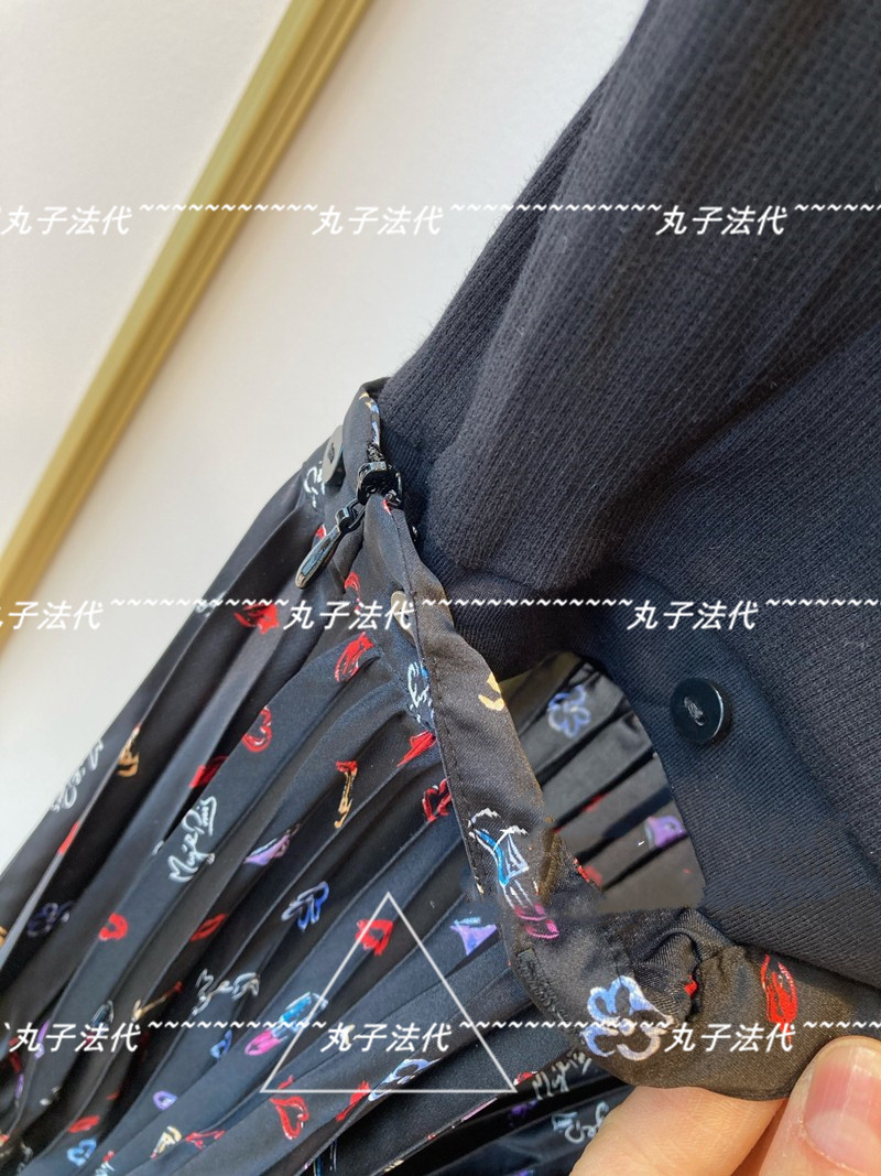 MAJE Round Collar Knit Splicing Snow Spinning 100 Plexu Short Sleeve Foreign Dress 21 Spring Summer Women