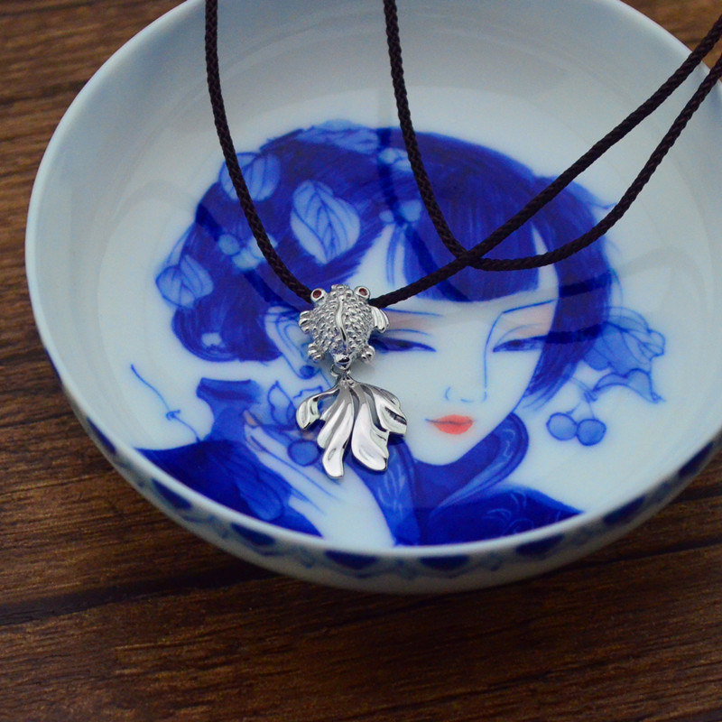 Lucky Gin Carp Necklace Woman Light Lavish Crowdfish Tail Small Fish Fairy 2021 The new minimalist pure silver pendant male