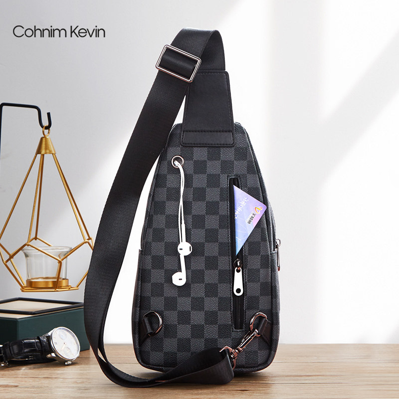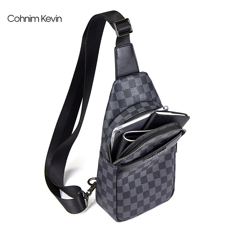 Cohnim Kevin Han version Men's checkered Diagonal Satchel Bag Casual Men's Bag Laced Chest Bag Fashion Single Shoulder Bag