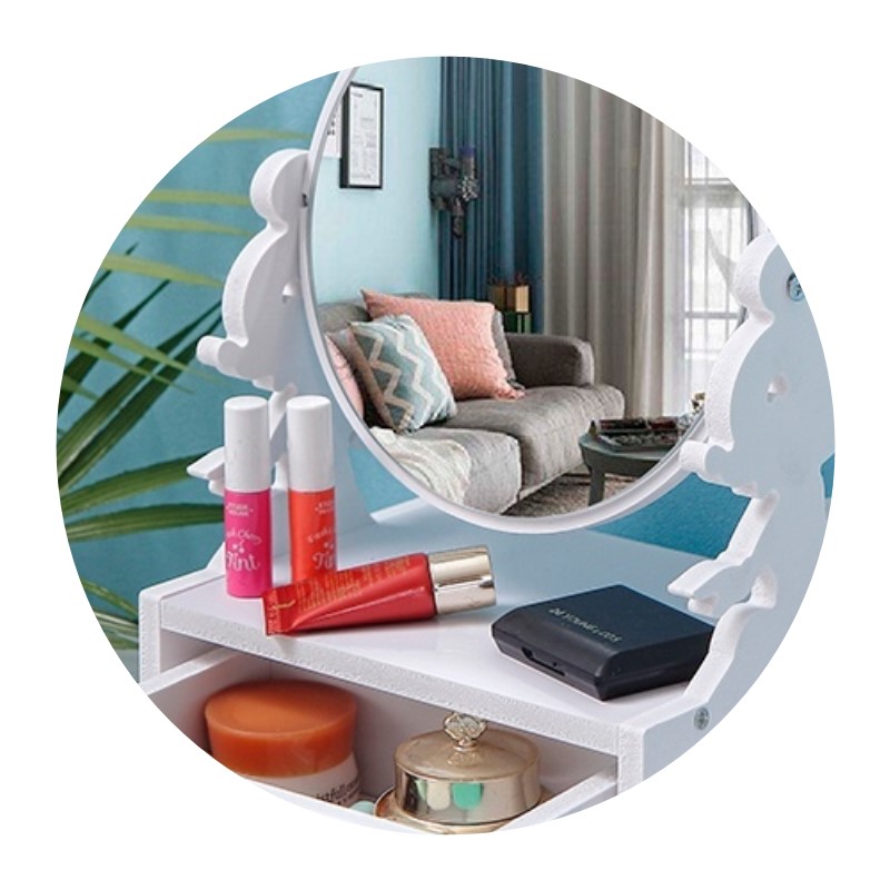 Round mirror double drawer (thickened) white