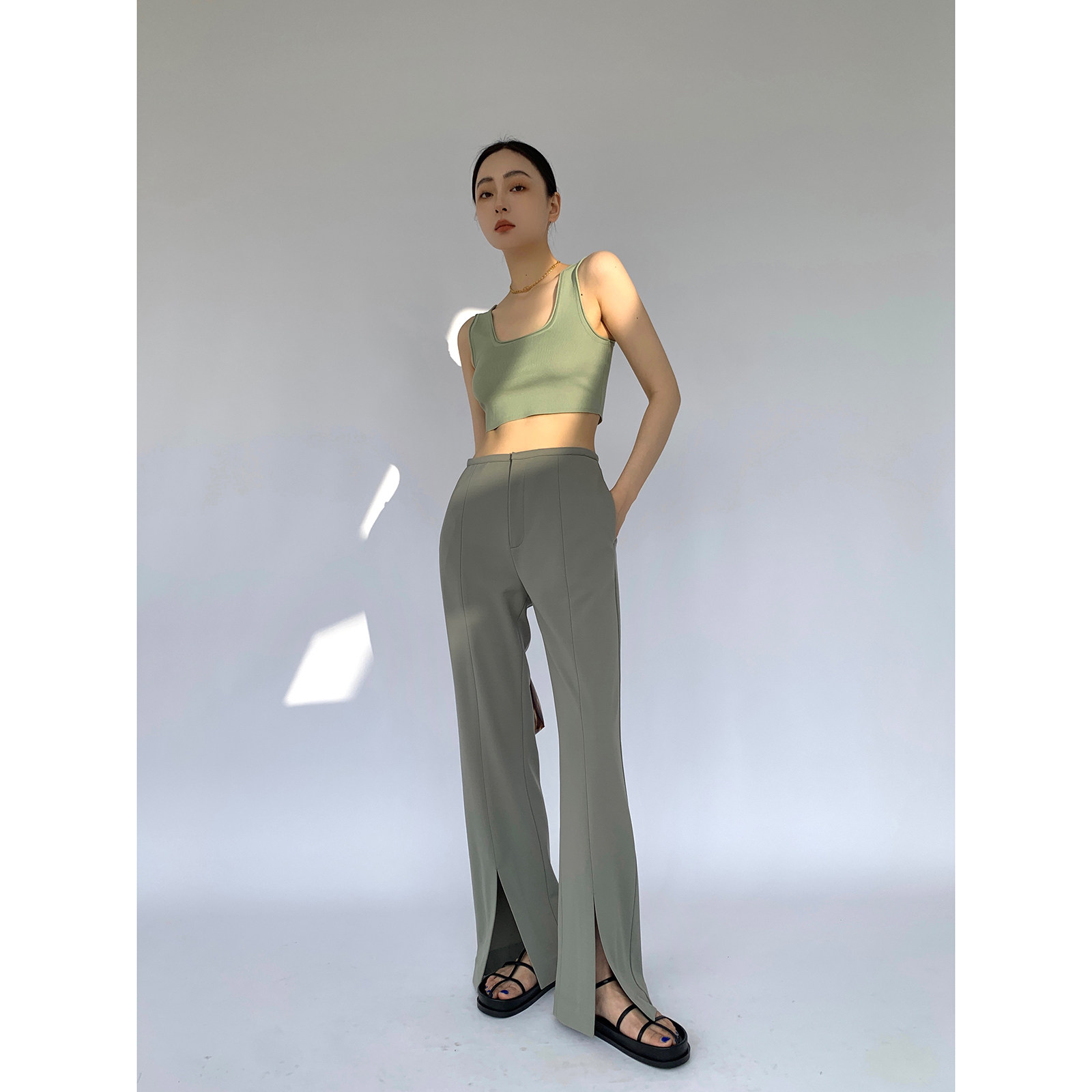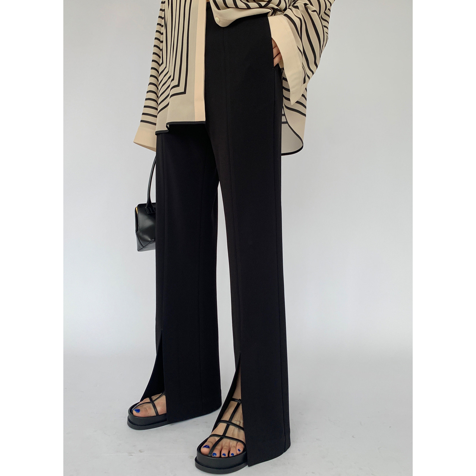 MaryME2021 Summer Japanese triacetic acid relaxed fix straight tube cross pants and broad leg perceived micro-lama trousers