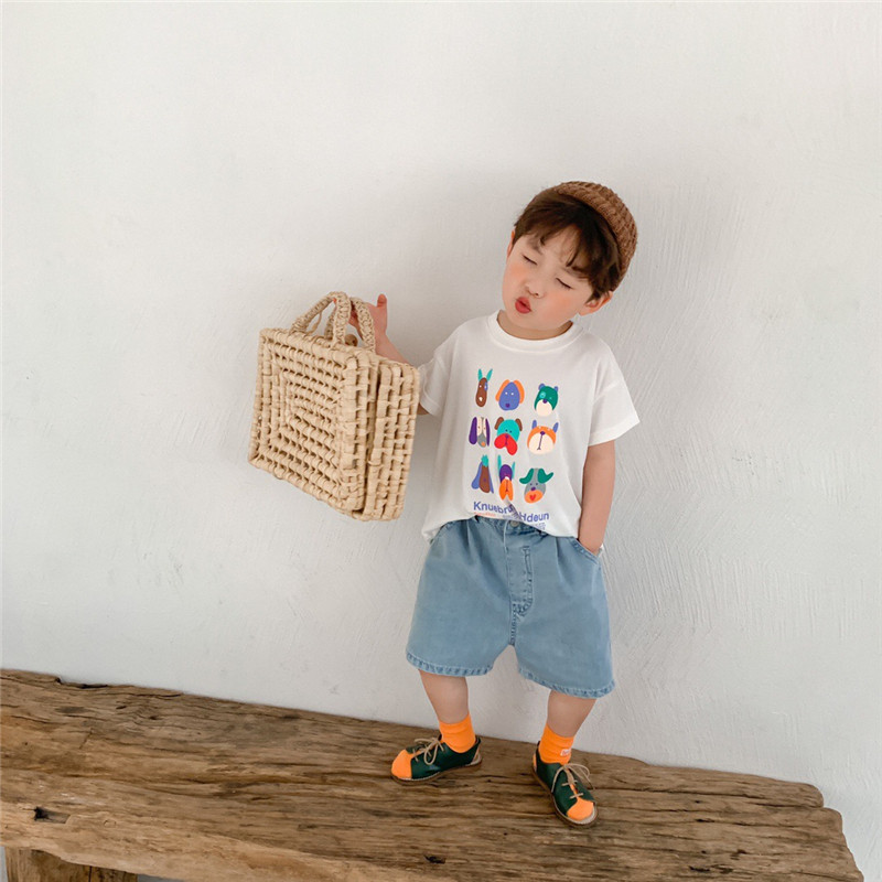 Feel explosive in hand ~ copper ammonia silk ice cold sensation Children's animal print loose short sleeve T-shirt male and female baby blouses summer clothes