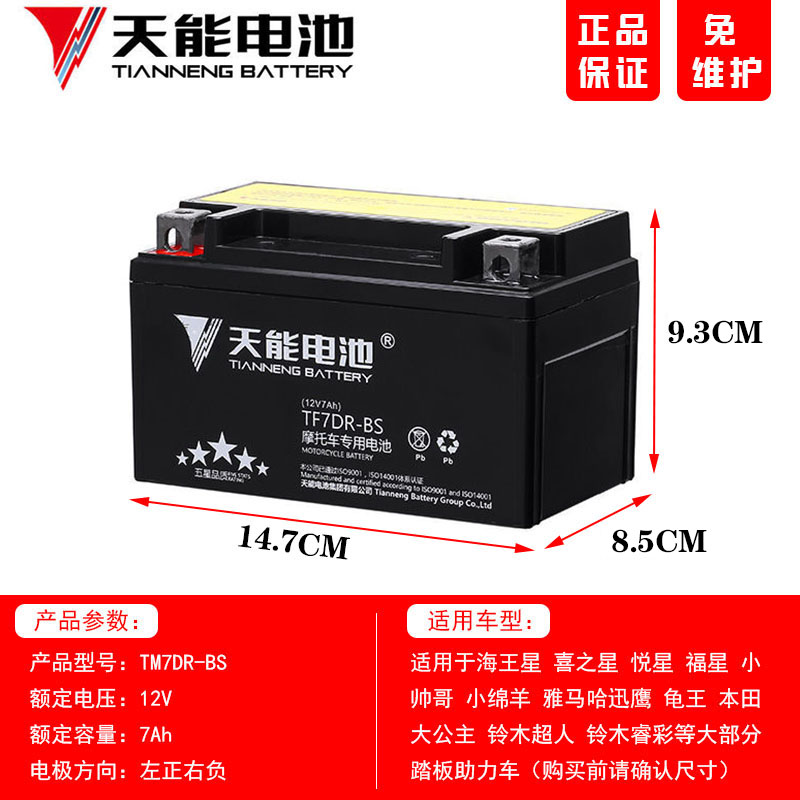 Tianneng motorcycle battery 12v7A men's straddle car 125 pedal model ghost fire maintenance-free battery dry battery