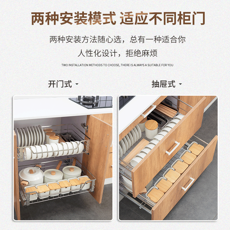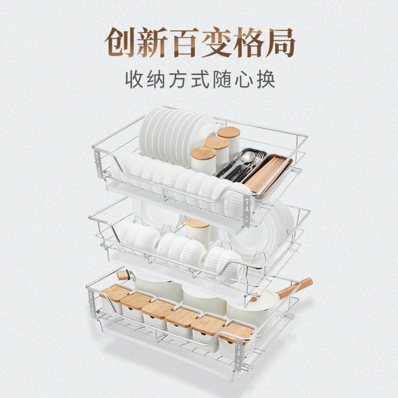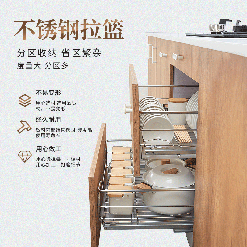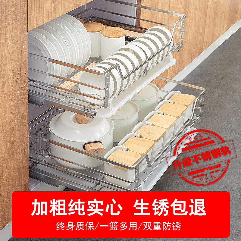Mastra basket kitchen integrated cabinet 304 stainless steel double drawer dish basket bowl rack Seasoning built-in shelf