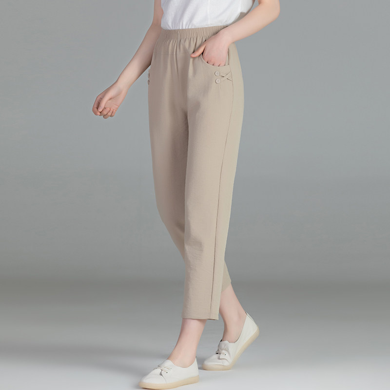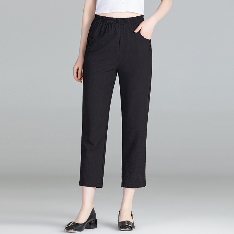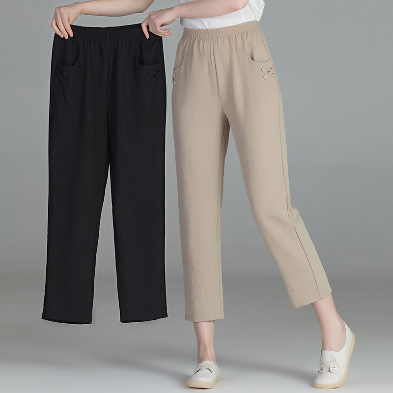 Middle-aged moms loaded with spring summer slim fit tightness waist casual pants summer clothing 40-50 middle-aged and older women pants 2022 new