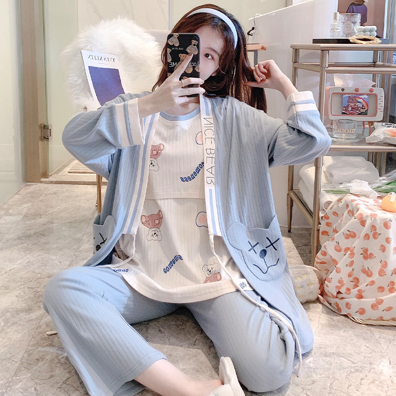 Lunar Subsuit Summer Postnatal pure cotton Three-style pregnant woman Spring and autumn thin Family clothes June 5 Lactation breast-feeding pyjamas