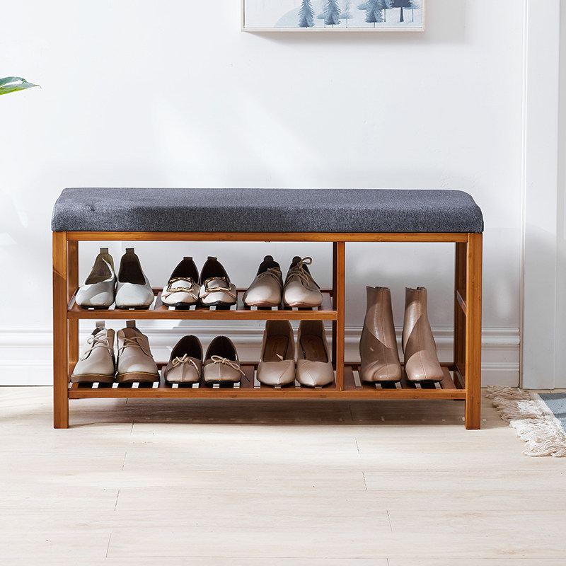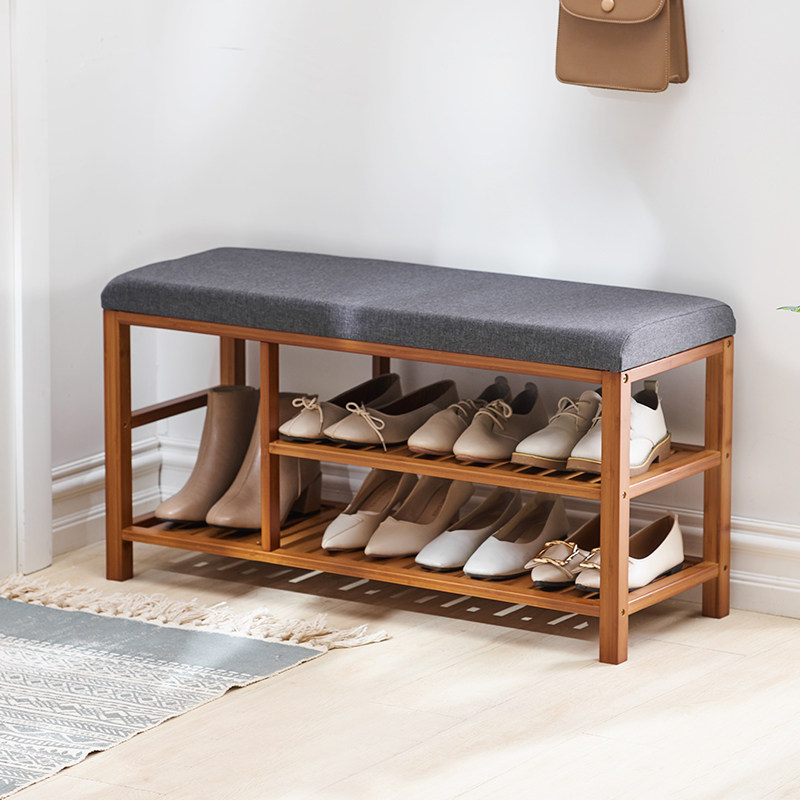 Solid wood Entrance Changing Shoes stool Home doorway Sitting Style Shoes Stool Multifunction strip stool Shoe Rack Soft Bag Cushion