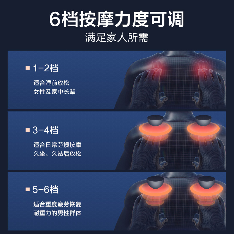 Massage intensity adjustment Automatic detection function Local heat therapy Roller speed adjustment Airbag intensity adjustment
