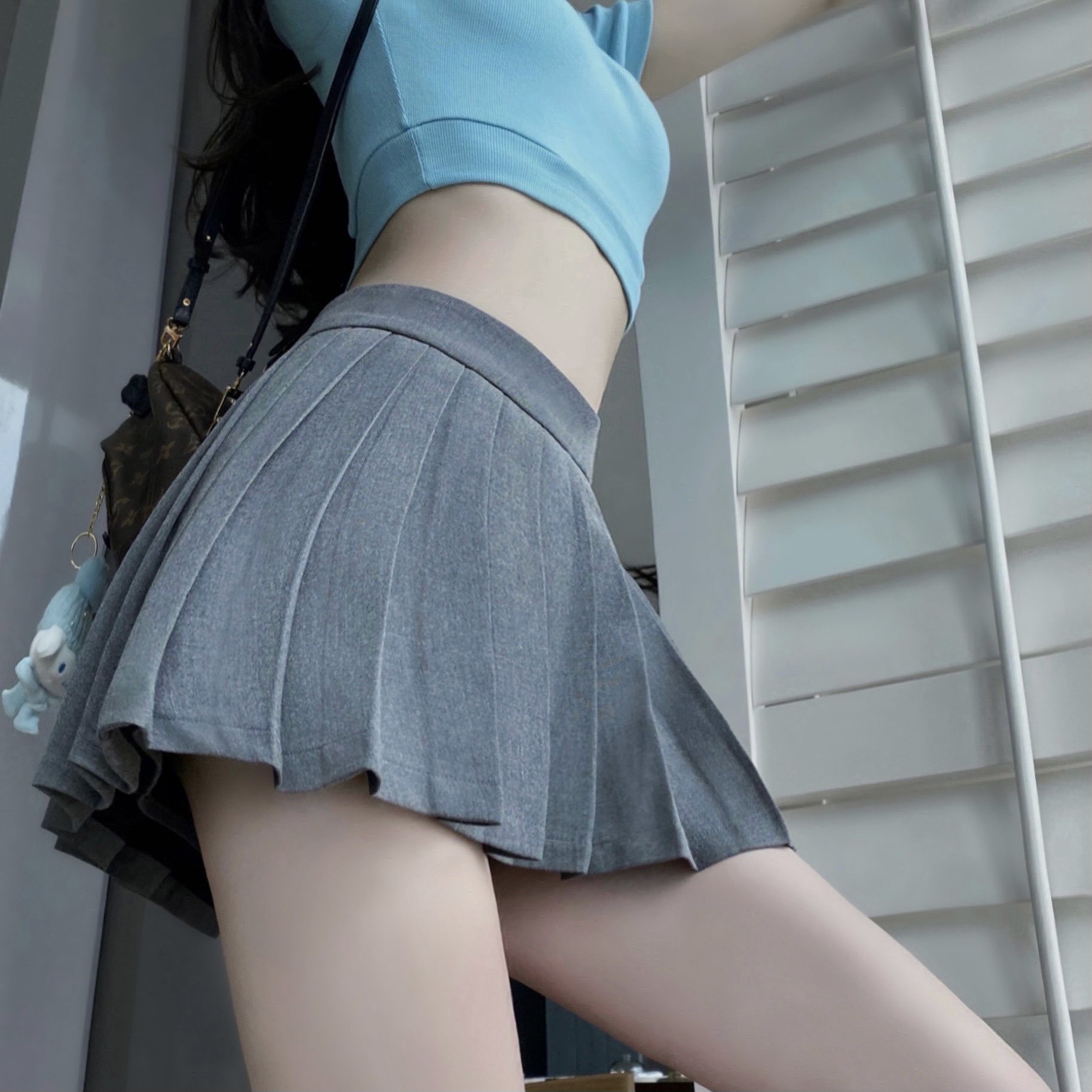 JoyingFeng (long legged Terminator) grey plexant skirt woman summer high waist half body dress short skirt anti-walking light