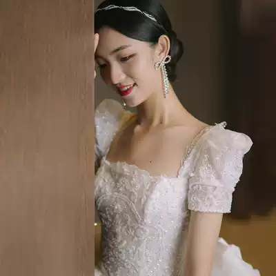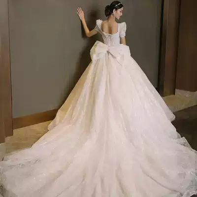 White-Qitu wedding dress to send three-piece white-Qitu wedding dress plus eight-piece white-tailed wedding dress to send three-piece white-tailed wedding dress plus eight-piece set for pregnant women with high waist version.